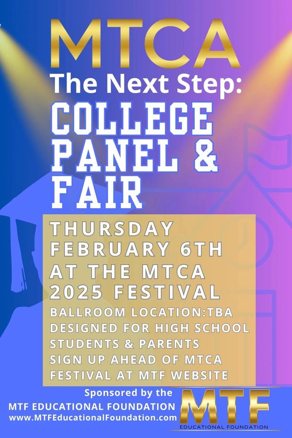 MTCA College Panel & Fair will be February 6th, 2025 at the MTCA 2025 Festival. High School Students must sign-up/register with link.