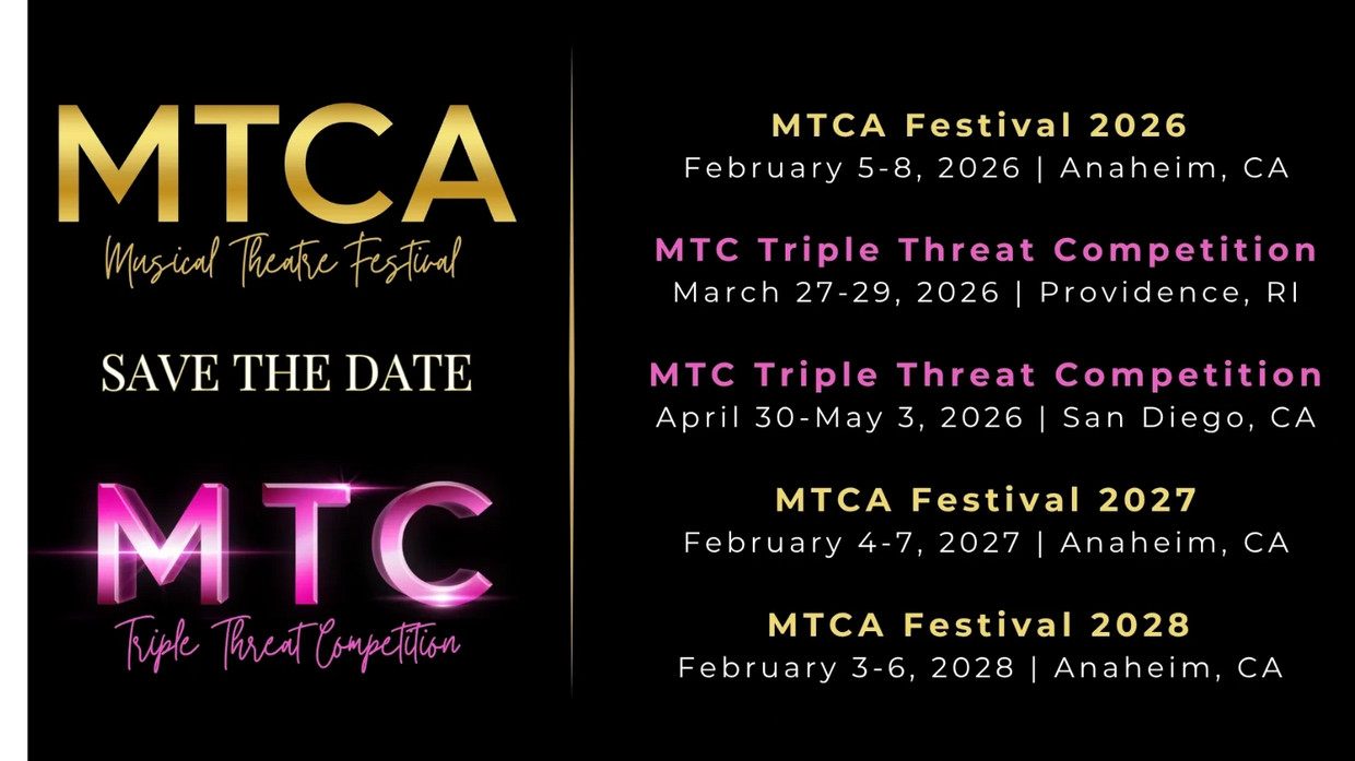 Musical Theatre Competitions of America is thrilled to provide a platform where extraordinary, performance-driven talents can thrive and be recognized. With more than 20 years of experience, MTCA is the creative force behind two industry-leading events: the MTCA Musical Theatre Festival and the MTC Triple Threat Competition.